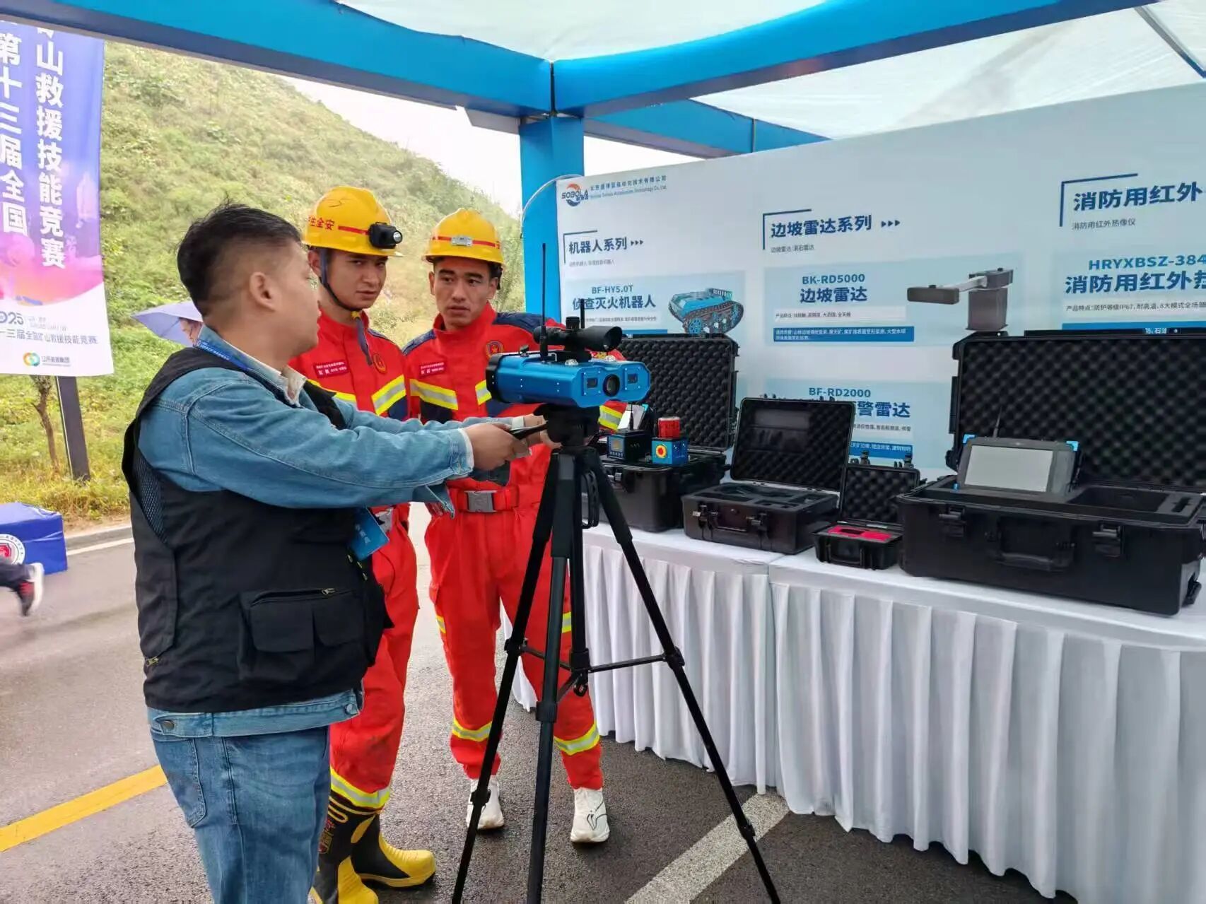 千里之外的矿山竞赛现场依旧热度不减。作为历届规模最大的竞赛,64支代表队围绕19个实战项目比拼,音视频生命探测仪成为盛博蓝展区的“明星装备”——其可穿透井下废墟、墙体障碍物,通过高清画面与音频捕捉被困人员信号,适配“有限空间救援”等核心科目;余震监测仪则能实时采集井下震动数据,精准识别余震波形,为竞赛中“灾后二次风险规避”提供数据支撑,吸引多支队伍驻足交流技术方案。